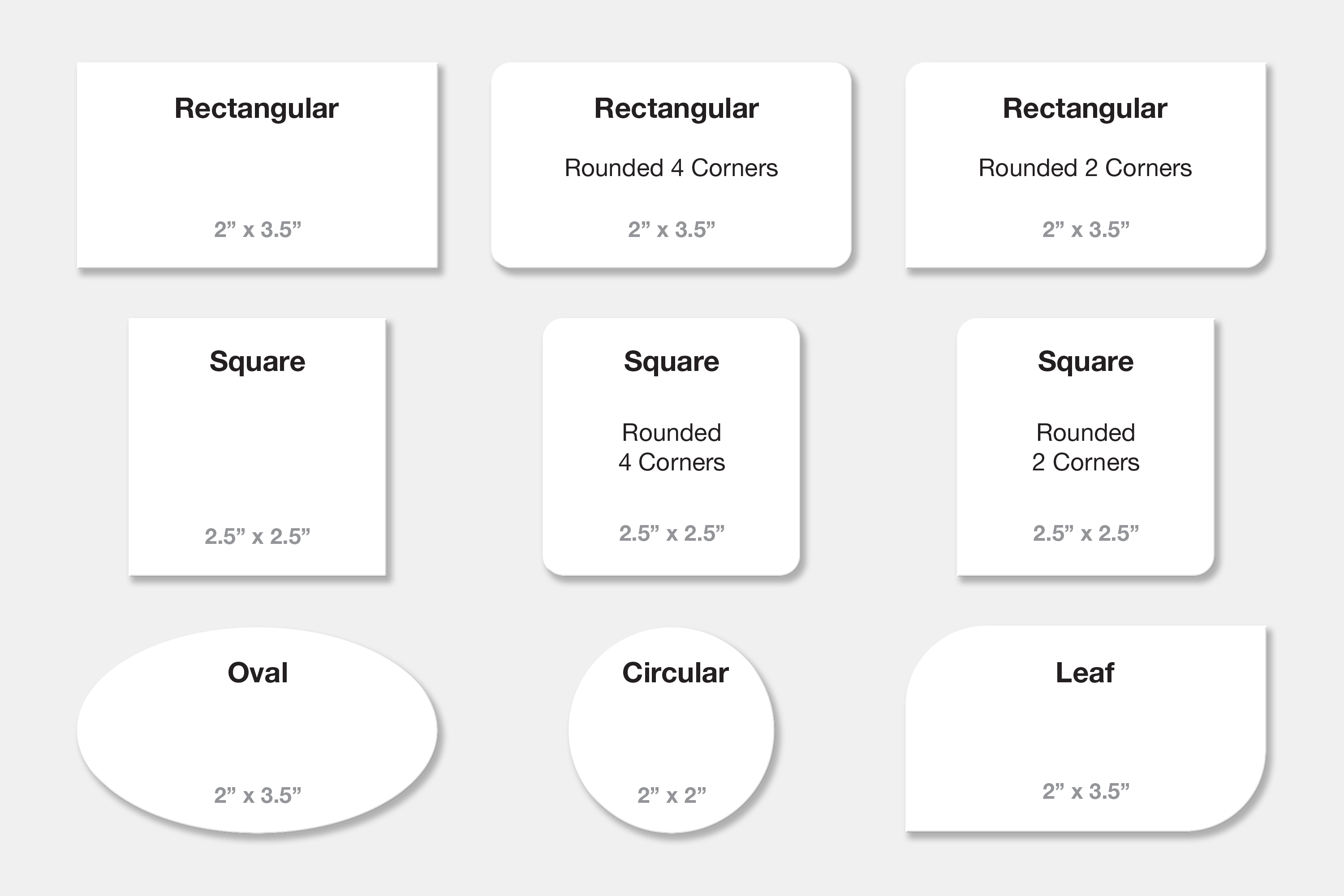 Please note that not all shapes are available in every size.