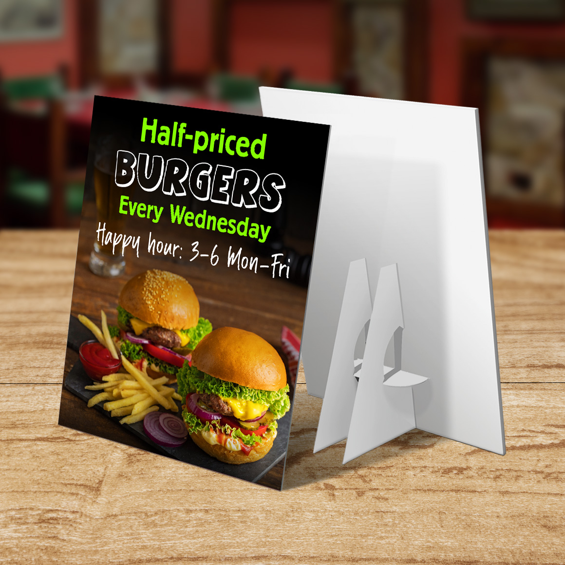 Turn any countertop into a powerful marketing spot with custom Counter Cards. Designed to display your message right at eye level, these full-color prints are perfect for shelves, display cases, register counters, and tabletops. Choose from lightweight foam core or durable PVC, both supported by a sturdy easel back for easy setup and reliable presentation.
