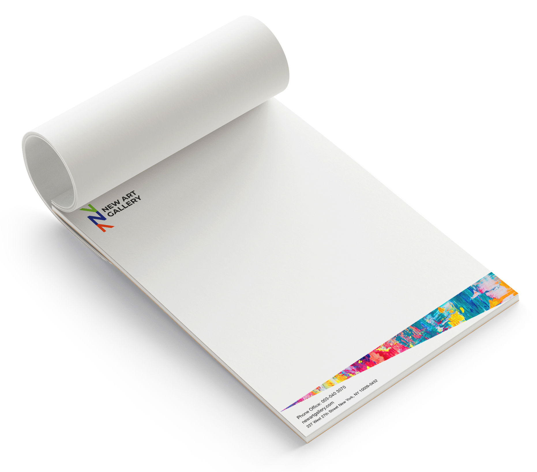 They're available in various sizes and page counts and are printed using a full four color (4/0) process. All custom Notepads are printed on bright white 70lb Premium Text pages or 70lb Linen Uncoated Text pages atop sturdy chipboard backings. Perfect for hotels, real estate offices and more.